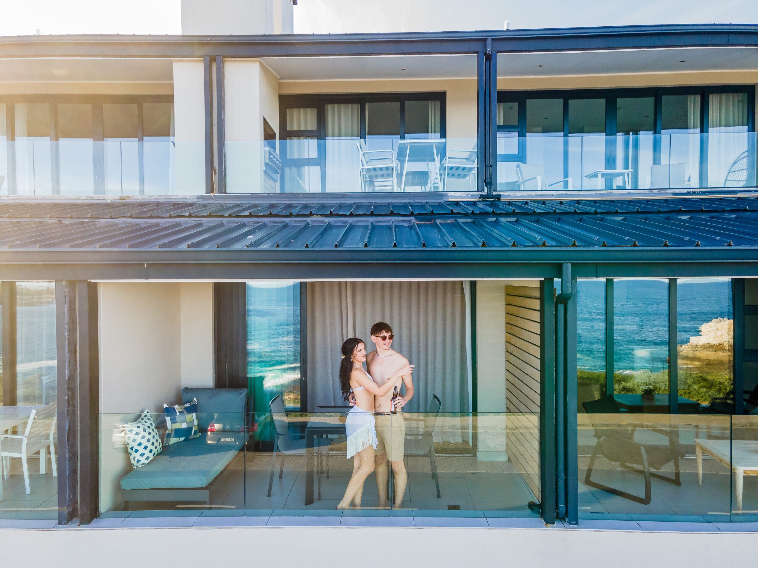Escape to this stylish Esplanade apartment in Hermanus with stunning ocean views. Sip coffee or bubbly on your private patio while watching whales and dolphins.